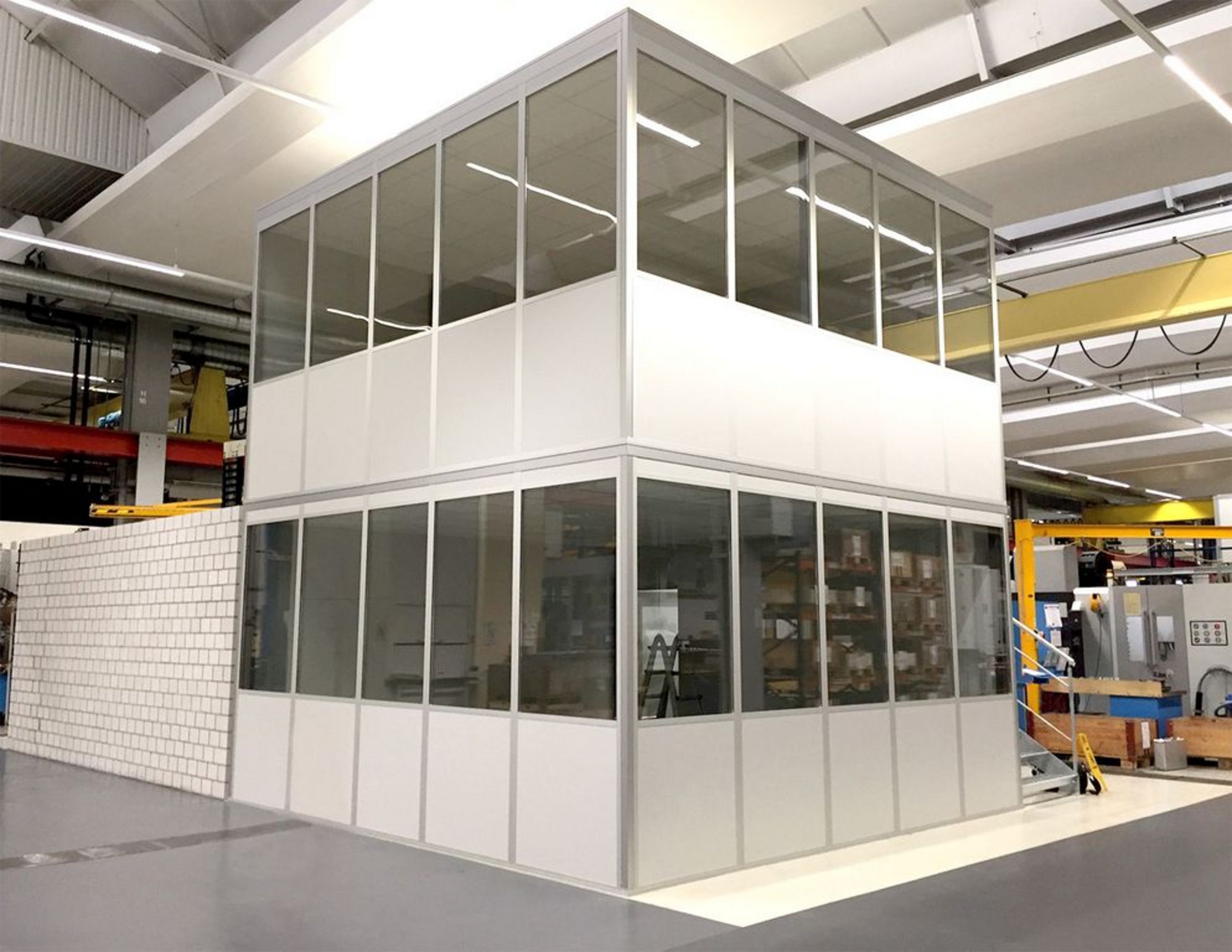 Ja. In Hallen mit ausreichender Deckenhöhe können zweigeschossige Hallenbüros gebaut werden, um zusätzliche Büroflächen und einen besseren Überblick zu schaffen.